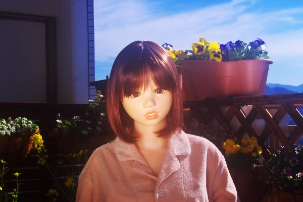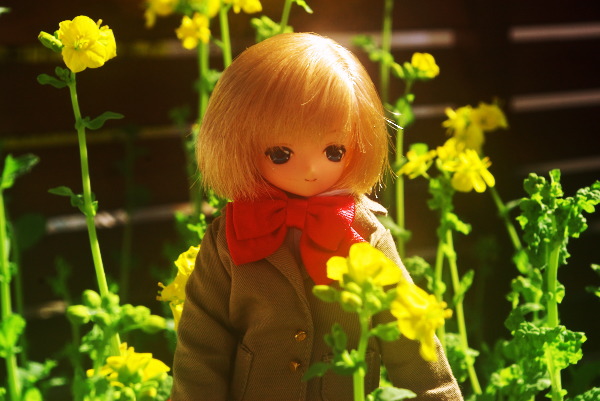| ももちゃんは、菜の花の香りを楽しでいるようです。うれしそうなお顔を みつめながら、二人は初お出掛けを思い出しているようですよ。 「あのとき、しなじょでお出掛けしたの♪ 「思い出話を聞かせて〜 |