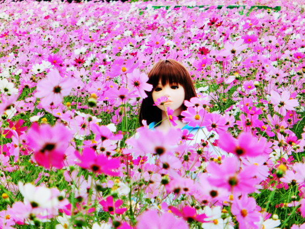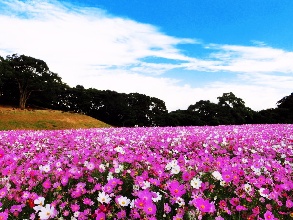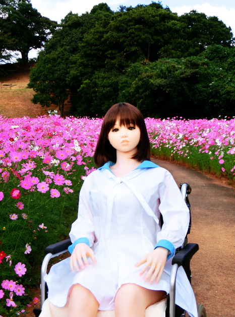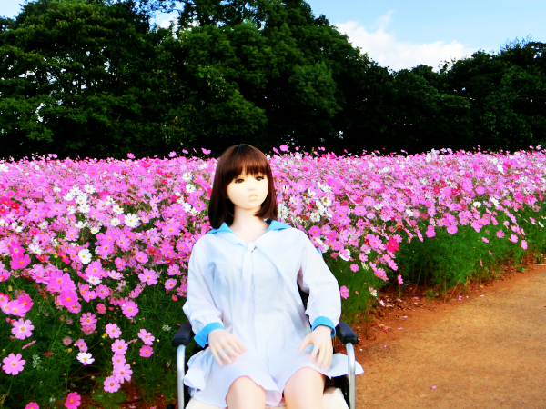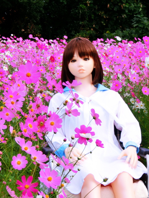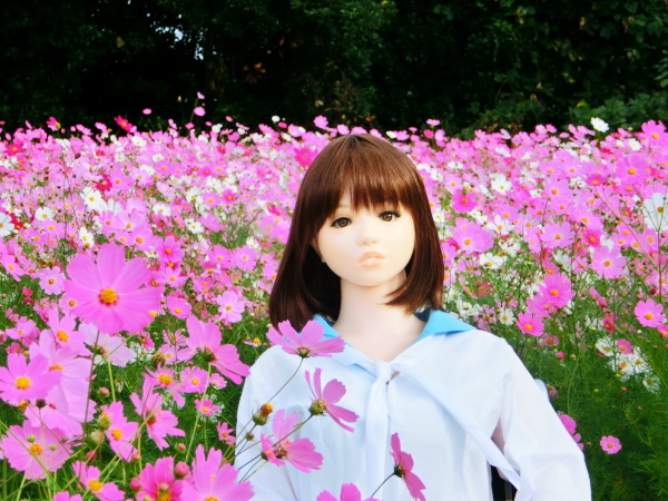 乙女のお花、コスモスを見に二人でお出かけのようです。