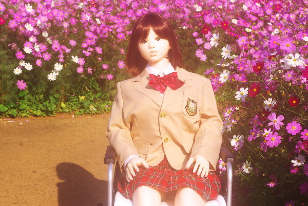 しなじょの制服がお花畑に合っていて可愛らしいです。 コスモスに囲まれて嬉しそうなすみれさん 「コスモス、コスモス〜 「おぱんちゅもピンクの花柄ですか? |