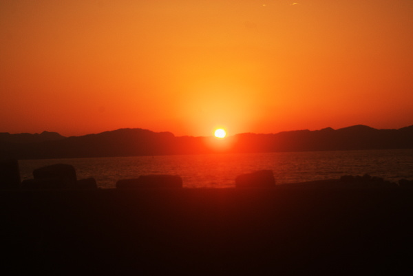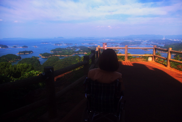 お日様が昇って来ました。海が好きなすみれさん ぷちドライブで公園に連れて来てもらったみたいです。 「島がたくさんあるよ。 「朝日に照らされていい景色だね。 |