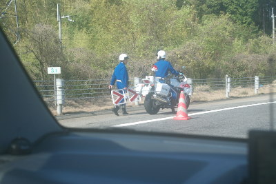 新潟港へ向かう道中での出来事、左(路肩)から猛スピードで車が追い越して行きびっくりしました。数秒後に右側から白バイが追いかけて行きました。 |