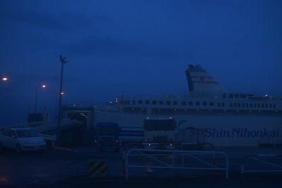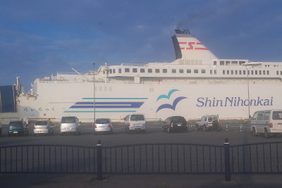 早朝に新潟港へ到着しました。まだ外は真っ暗ですが、周りが明るくなると白色のフェリーがゆっくりドックに入ってきました。「大きなおうちが海の上に浮かんでる。 |