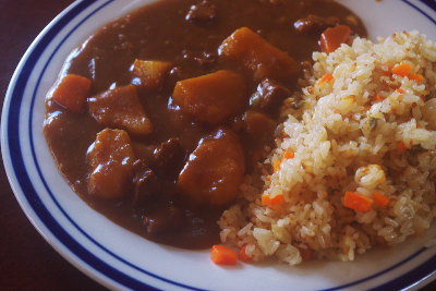 コテージでは、ハンゴウでご飯を炊いて、できるだけ北海道産の食材を使ってシチュー、カレー、野菜炒め、ラーメンなどを作って食べました。フライパンや鍋を用意したので、今後、キャンプとかにも一緒に行きたいと思います。 |