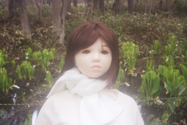 水滴が少しお顔についてしまったすみれさん、自然の中で何かを見つけたようです。 「雨? 子供の頃は、雨が降ると水たまりに入って服をどろどろにして帰って良く怒られました。雨は憂鬱に感じるようになった今、初めて雨を体験するすみれさんをみつめると過去の記憶が少し蘇ってきました。 |
