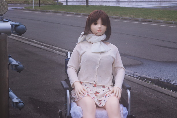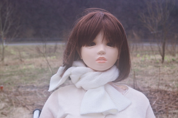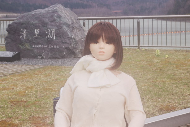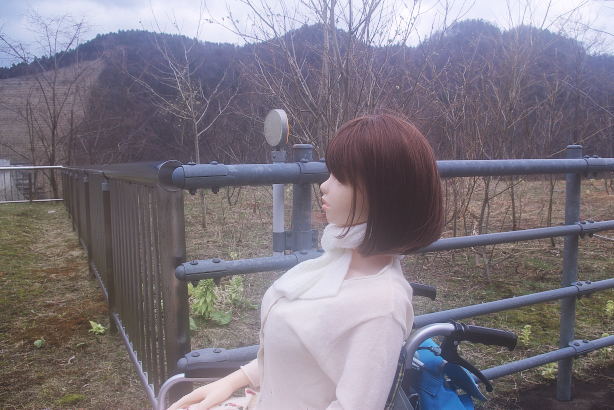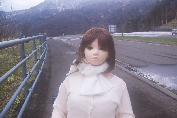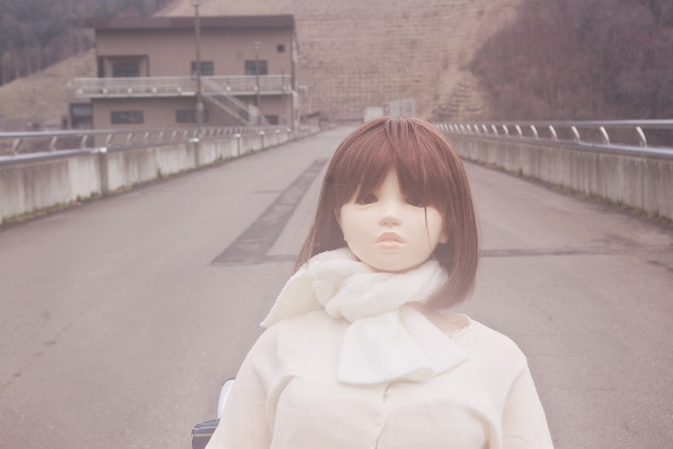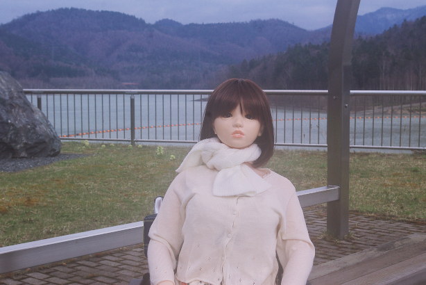 やっとダムの入り口まで来たようです。どっちに行こうか戸惑うすみれさんを見て マシンガンが後ろから押してあげたようです。「リードしてもらっちゃた。 風があるので、スカートをしっかり押さえる姿も可愛らしいです。 |