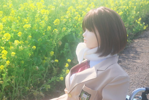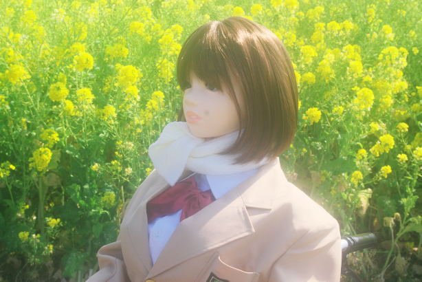 しなじょの制服と黄色い菜の花が合っていると思います。 「春の香りみ〜つけた。 |
