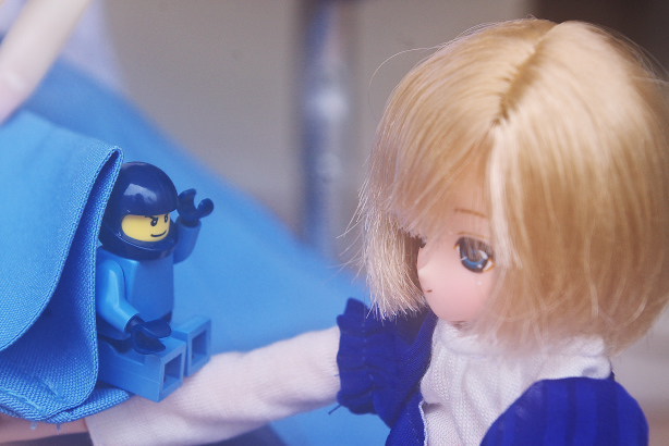 慌ててスカートから飛び出し、落ちそうなところを助けられるマシンガン 「お姉ちゃんのスカートで何してるんですか?」 ももちゃんにすぐに見つかってしまうようです。 |