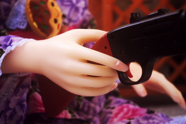 「お姉ちゃん、向こうに射的屋さんがあるよ。」 たこ焼きが出来るまで遊びに行くようです。 さて、何を狙っているのでしょうか? |