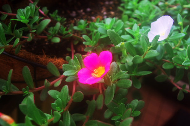 紅白のポーチュラカがちょうど咲いて二人を応援しているみたいです。 とても可愛らしいお花です。 |