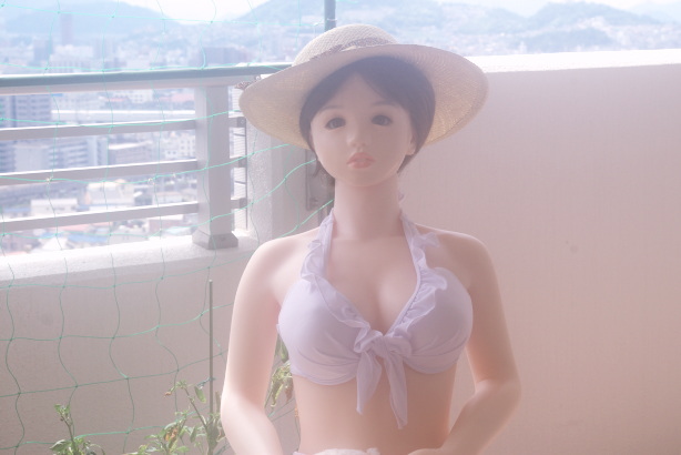「お天気が良いので日光浴です。」 麦わら帽子に白のビキニが可愛らしいです。 |